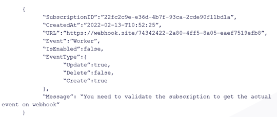 Upon receiving a subscription request from an authorised client, Notification Hub registers the webhook on Event Grid as a topic, which is a collection of related events. Customers (subscribers) can decide which topics to subscribe to. The following is an example response when subscribing to a topic: